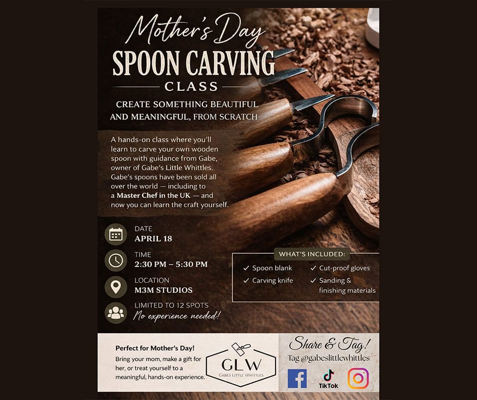 Mother’s Day Spoon Carving Class with Gabe’s Little Whittles